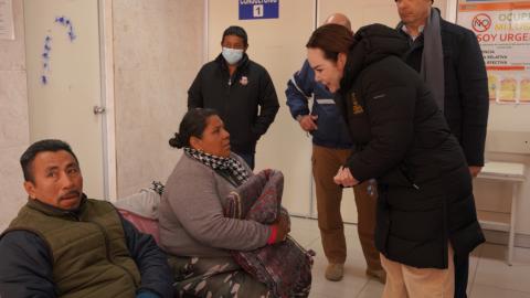 Por instrucciones del Alcalde, Carlos Peña Ortiz, el Sistema DIF Reynosa visitó el Hospital General y el IMSS 15, para llevar apoyo, ante las bajas temperaturas, a las familias que tienen seres queridos internados, entregando cobijas, chocolate caliente y pan.