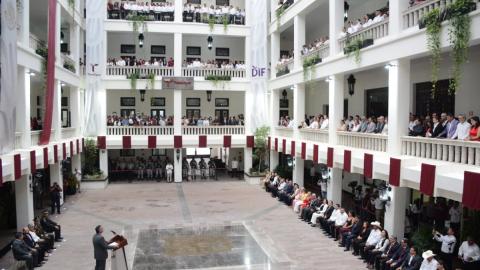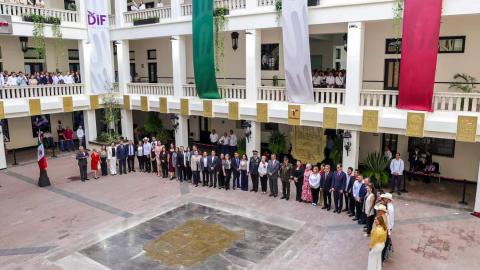 El Presidente Municipal, Carlos Peña Ortiz, participó junto al Gobernador Constitucional de Tamaulipas, Dr. Américo Villarreal Anaya, en la ceremonia de Honores a la Bandera, este lunes 7 de octubre, en la explanada del Palacio de Gobierno, en la capital del estado.